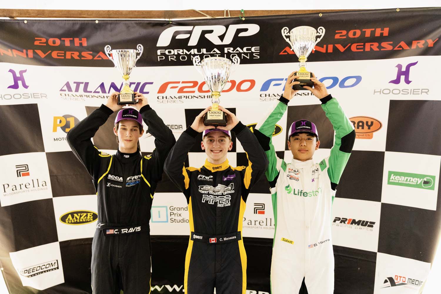 In the F1600 feature race, it was Menezes who was able to carry the momentum from his heat two win to secure the victory and celebrate on the top step of the podium. Ybarra and Travis continued their presence at the front of the field, finishing second and third, with Boss Patel and Jake LeRoy completing the top-five. In the F1600 Masters class, David Livingston was the victor ahead of John Thompson, David Adorno, Steve Oseth, and Bob Reid.
